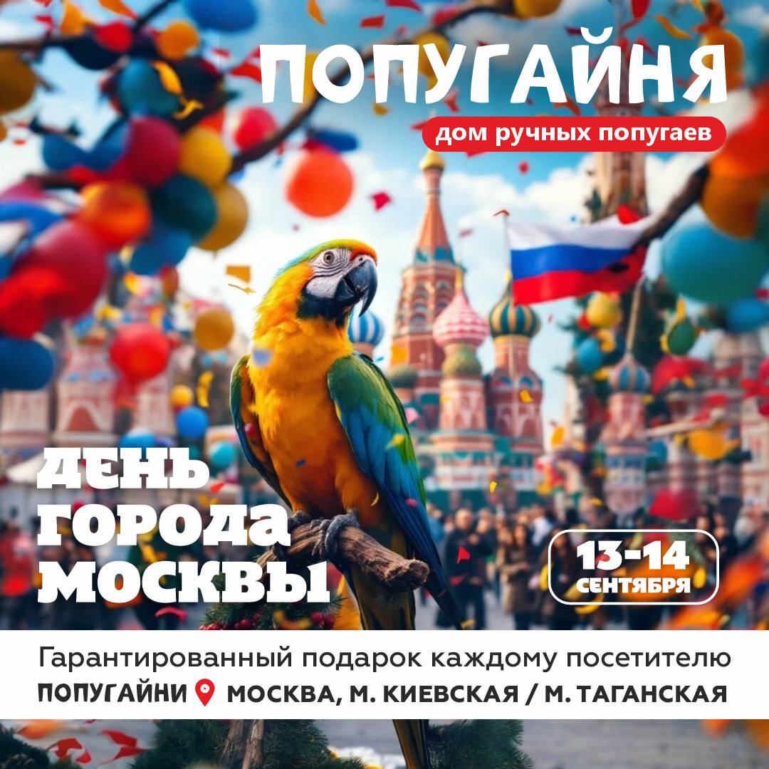 Приходите в «Попугайню» на Киевской или Таганской в День города Москвы, чтобы разделить праздник вместе с пернатыми друзьями и унести с собой не только подарки, но и самые тёплые воспоминания!
